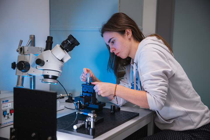 Už od prvního ročníku budete pracovat ve špičkových laboratořích a postupně zjistíte, která oblast vám sedí nejvíce. Inženýrská optika, fyzika a inženýrství povrchů a tenkých vrstev, nebo nanotechnologie? Na některý z těchto směrů můžete následně plynule navázat i v navazujícím magisterském studiu.